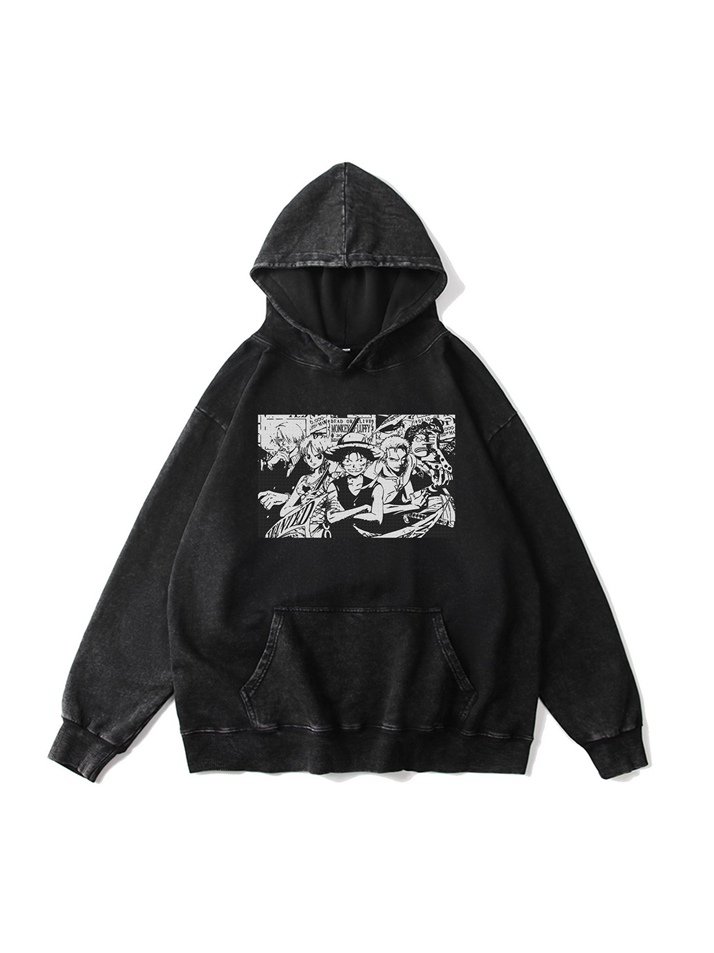 360g Essentials Straw Hat Pirates Wash Old Cotton Hoodie