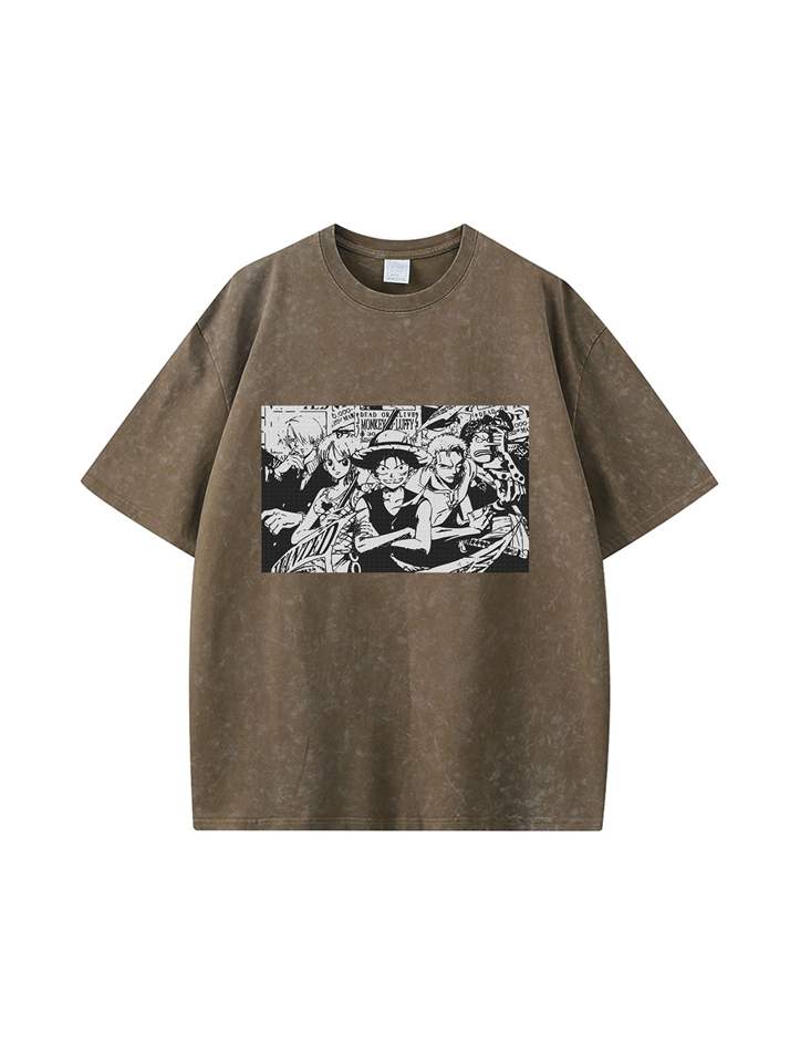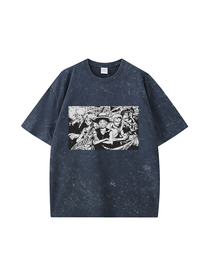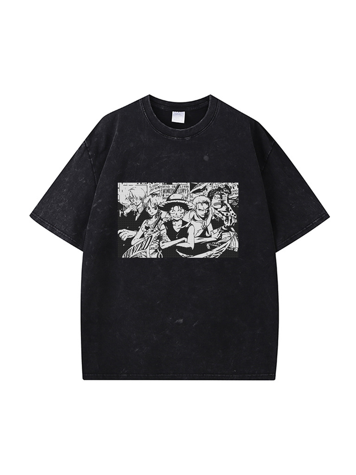 270g Straw Hat Pirates Printed Wash Old Cotton T-shirt