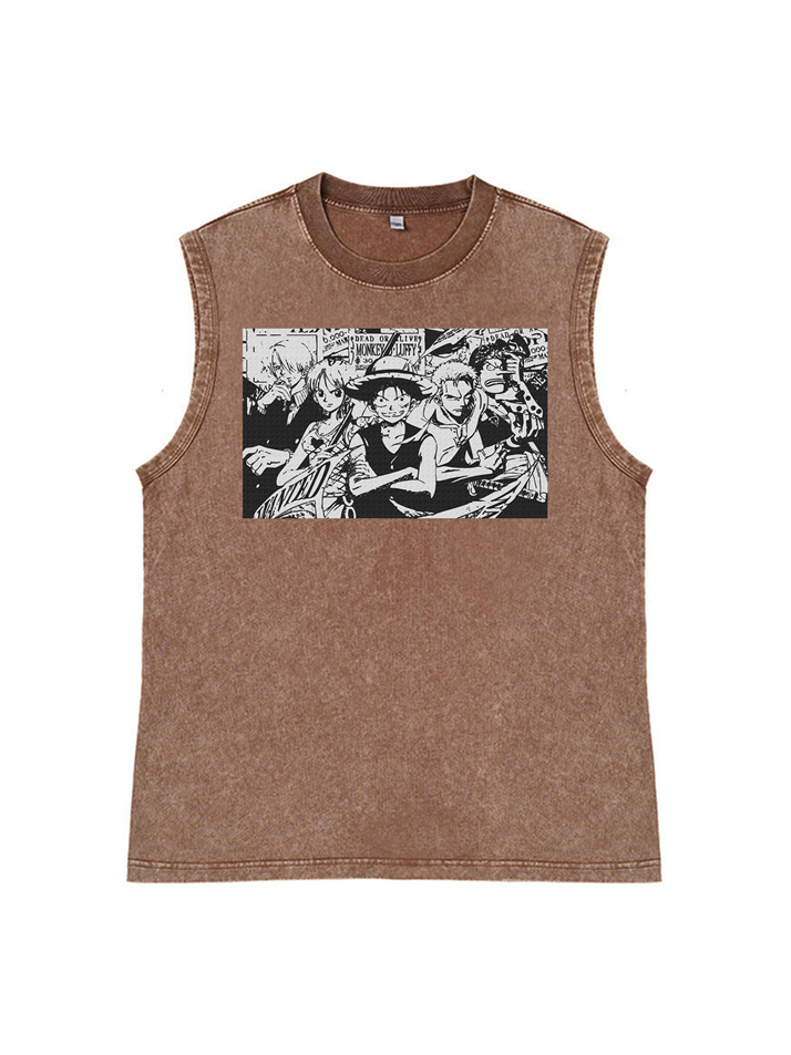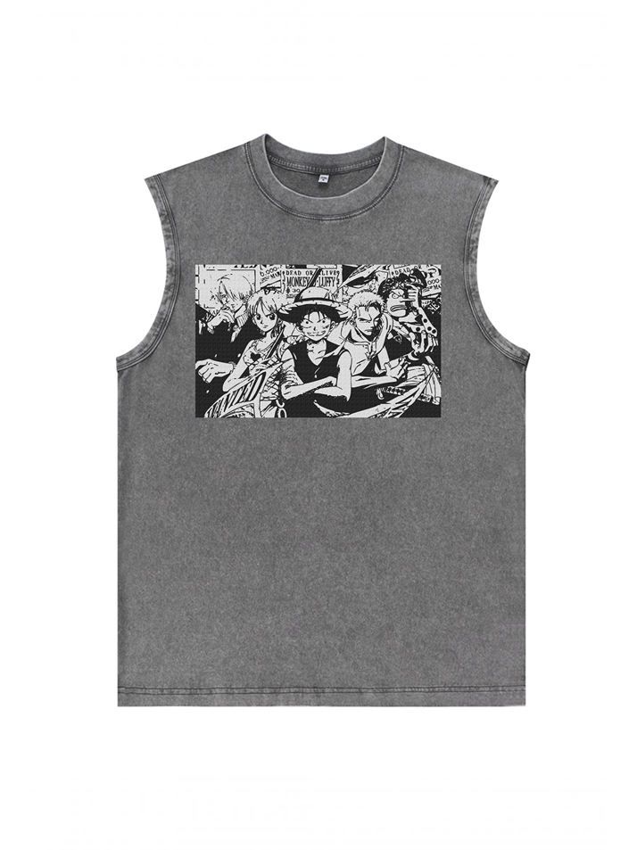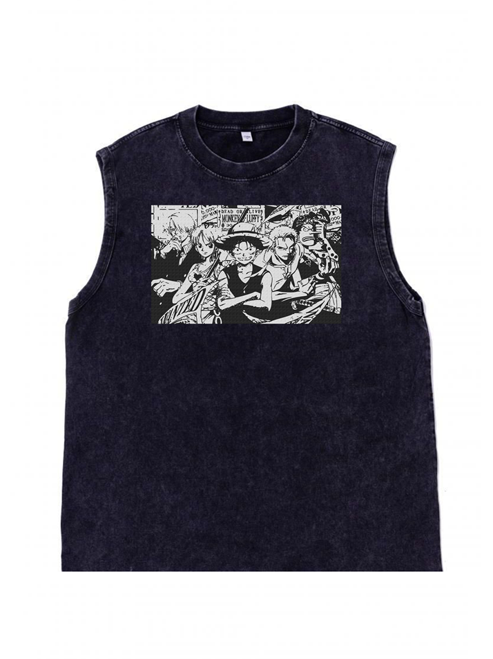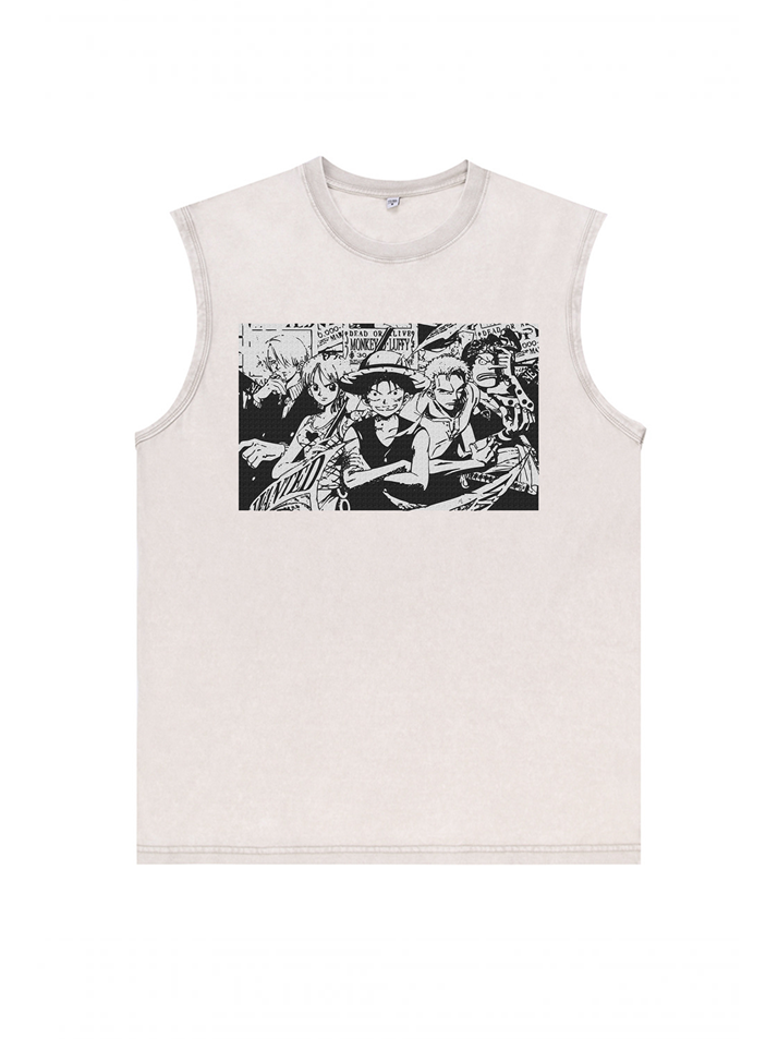 230g Straw Hat Pirates Wash Old Cotton Sleeveless T-shirt