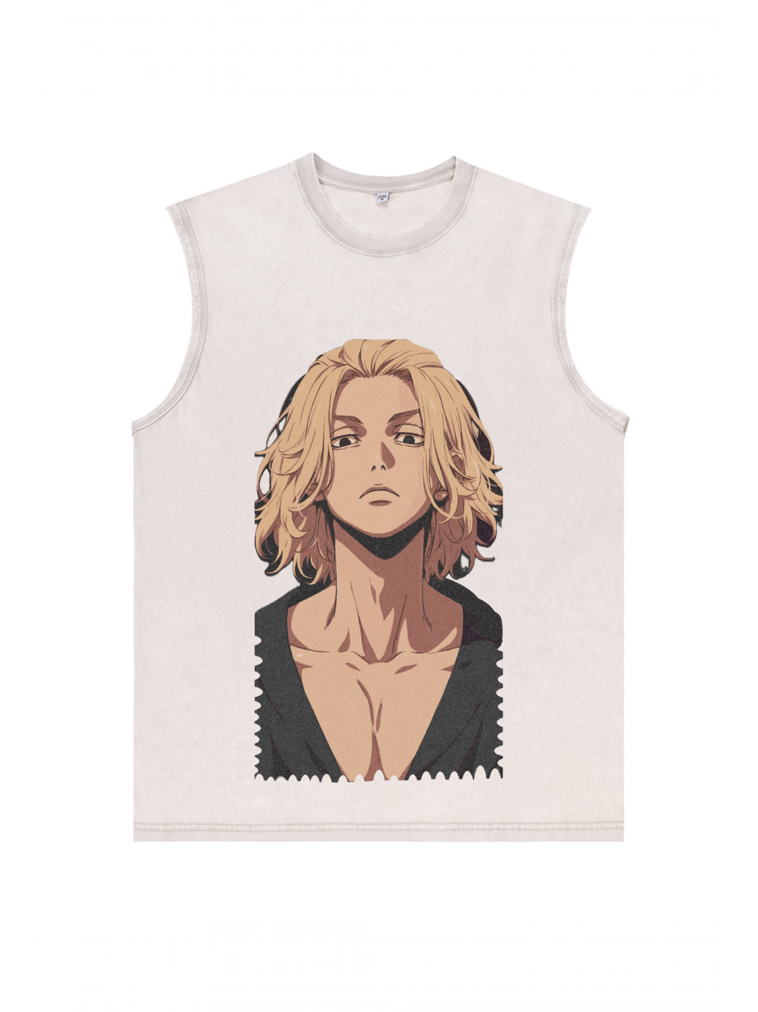 230g Mikey Printed Wash Old Cotton Sleeveless T-shirt