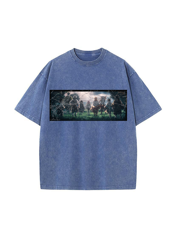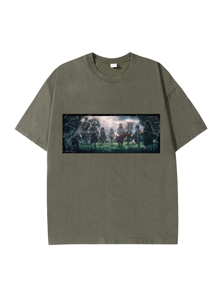 270g Demon Slayer Printed Wash Old Cotton T-shirt