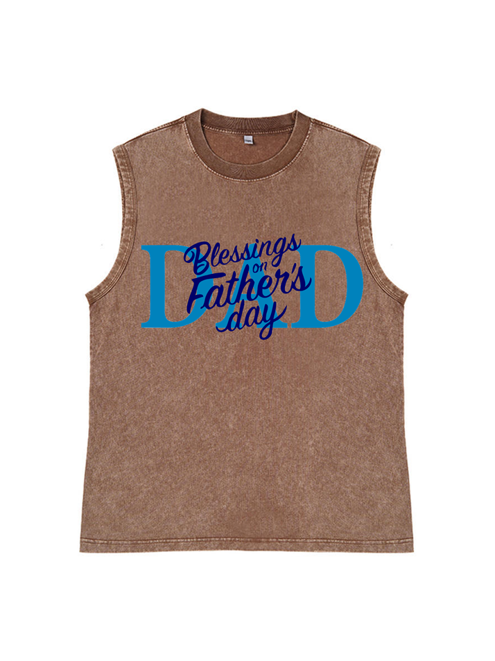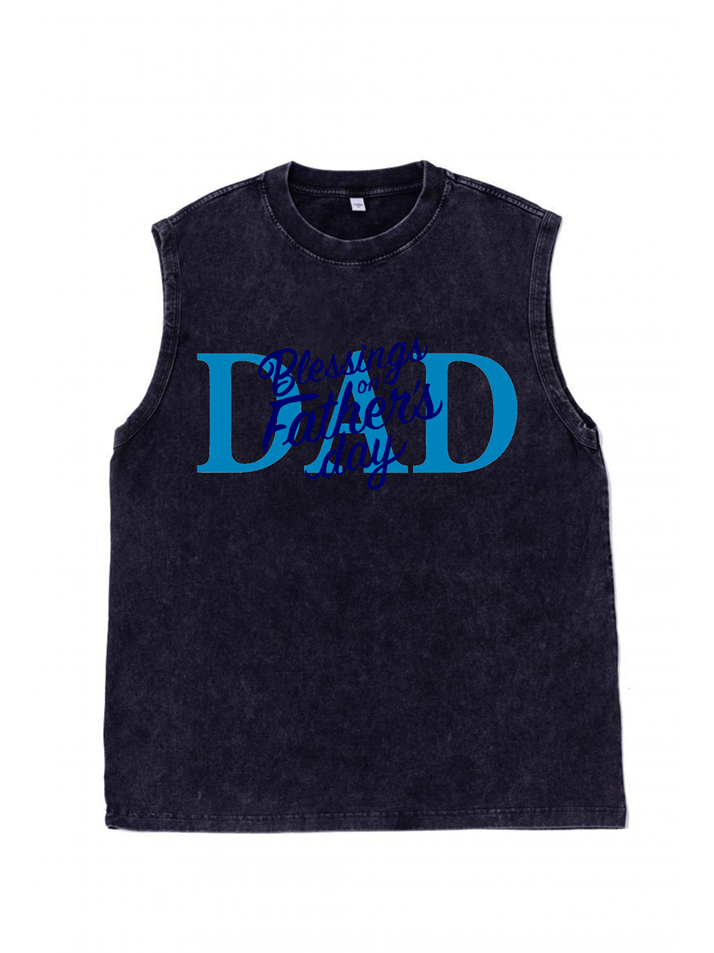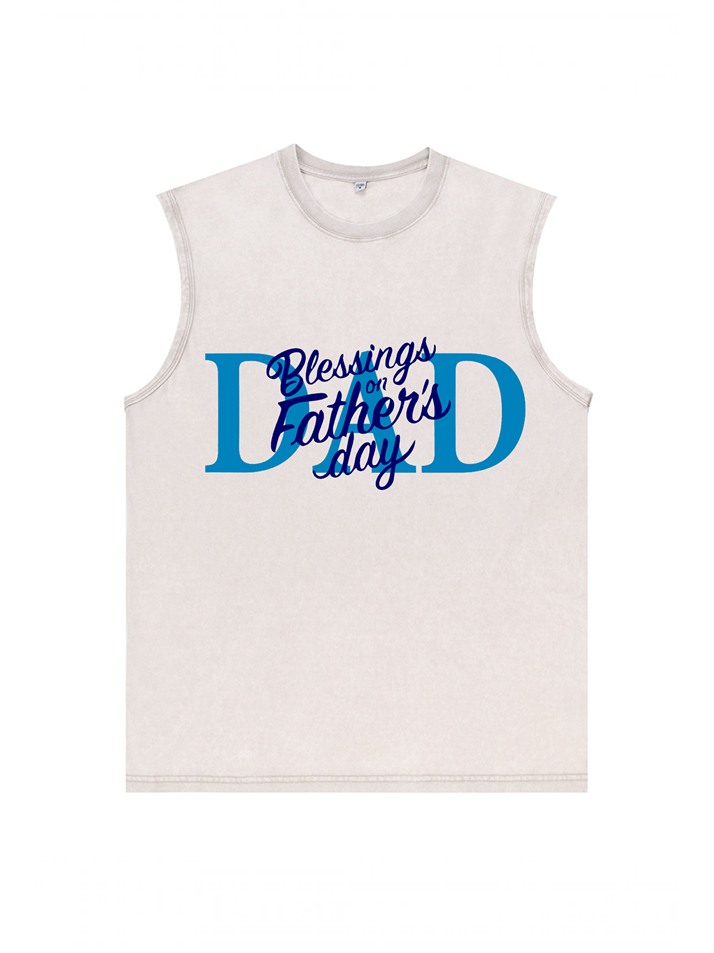 230g Blessing On Father's Day Wash Old Cotton Sleeveless T-shirt