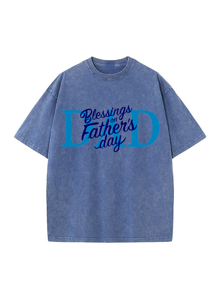 230g Blessing On Father's Day Wash Old Cotton T-shirt