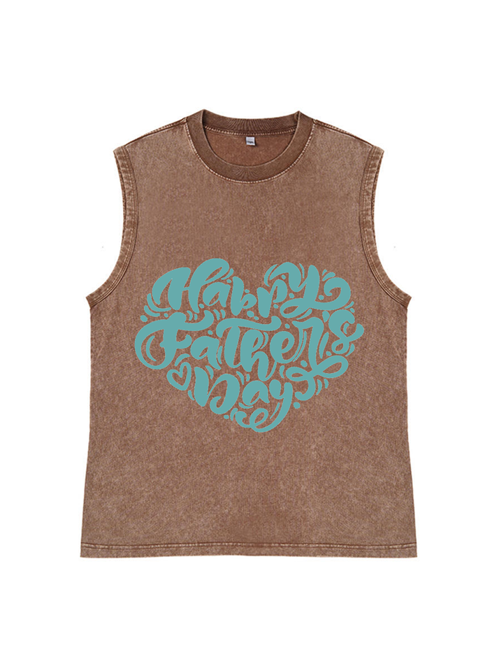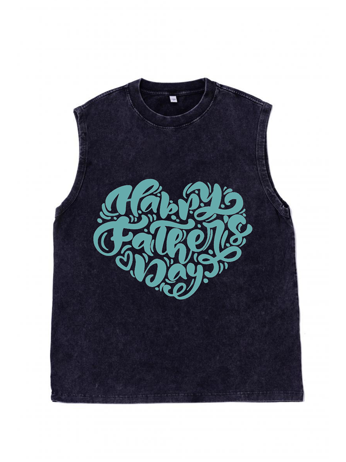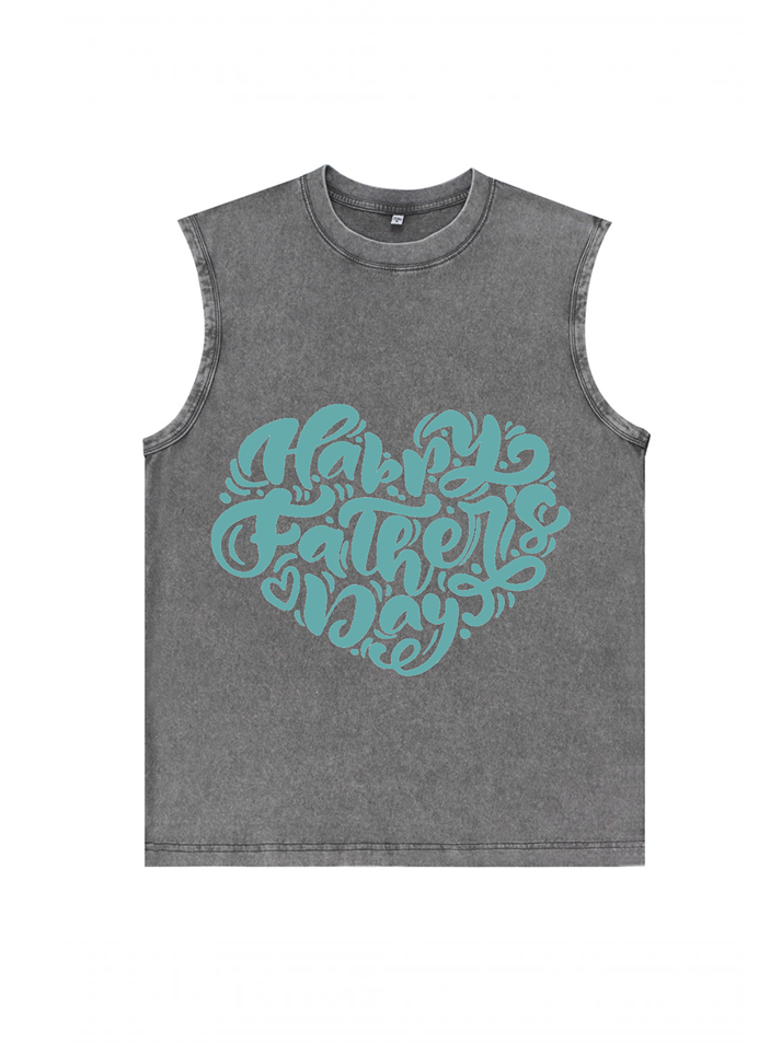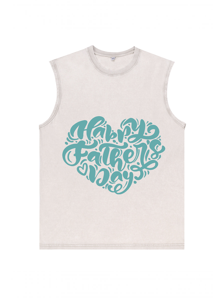 230g Heart Happy Father's Day Wash Old Cotton Sleeveless T-shirt