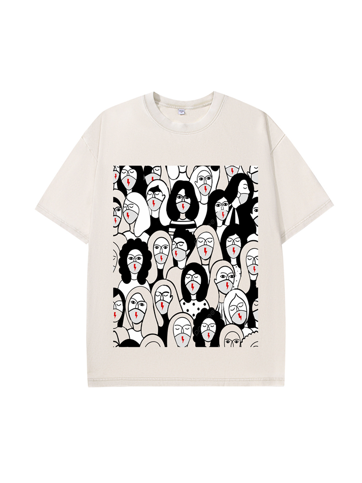 Introducing our exclusive 230g Cartoon Equality Champion Printed Wash Old Cotton T-shirt for Women. Made from premium quality cotton, this shirt features a unique and bold cartoon print, making it the perfect statement piece. Show your support for equality while staying stylish and comfortable. Elevate your wardrobe with this luxurious addition.