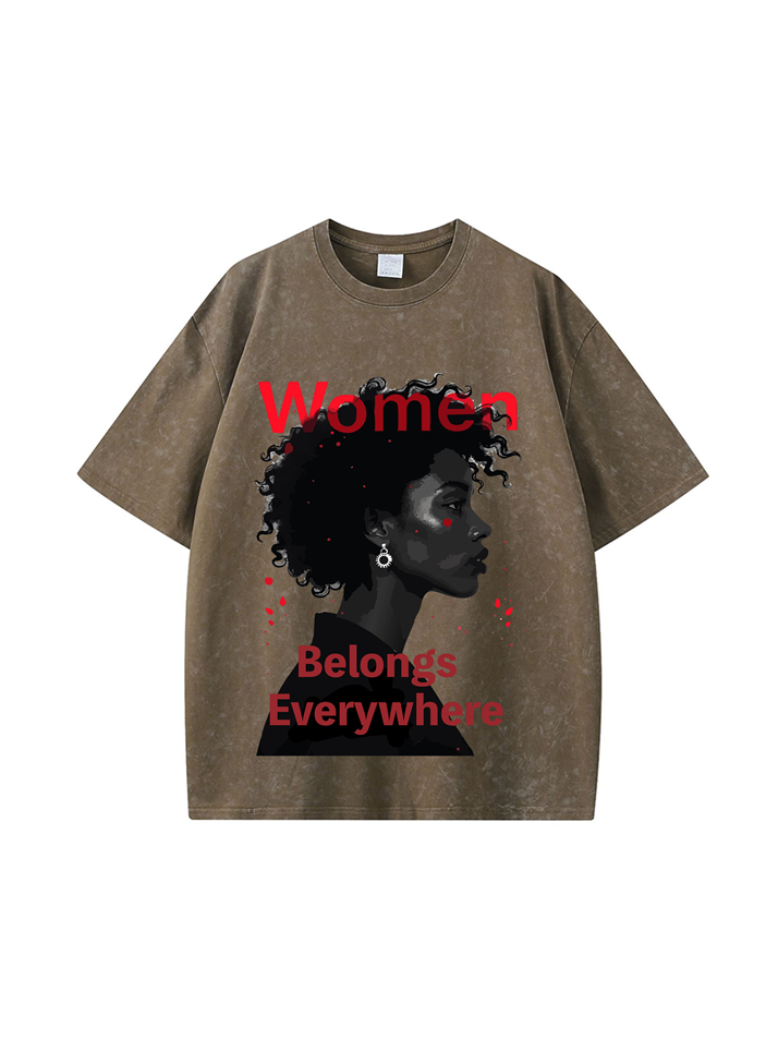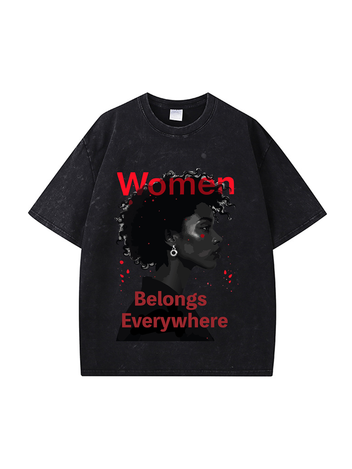 Elevate your wardrobe with the 270g Women Belongs Everywhere T-shirt. Made from premium washed cotton, this tee features a bold "Women Belongs Everywhere" print, making a statement about inclusivity and empowerment. With its comfortable fit and durable material, it's a must-have for any fashion-forward woman.
