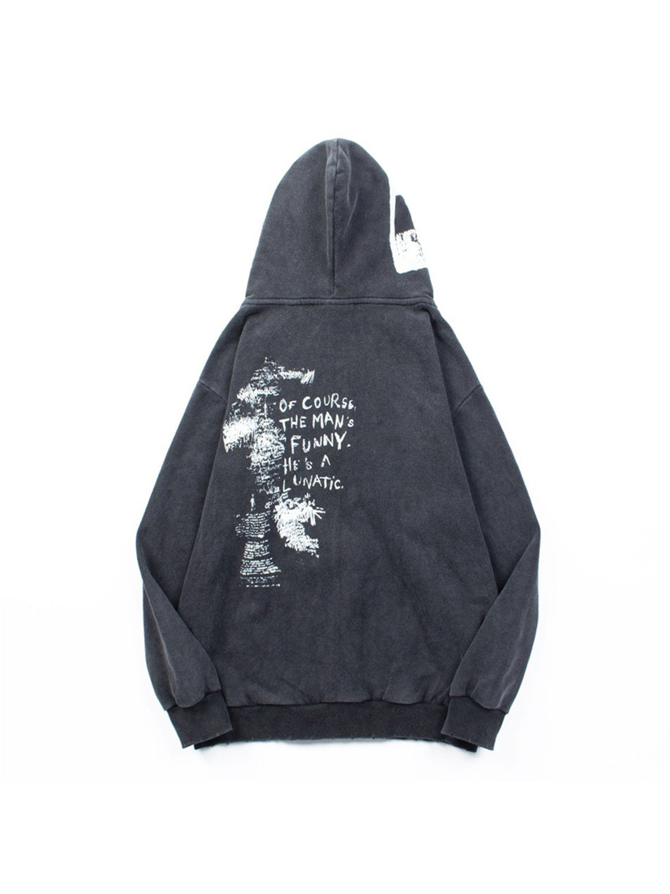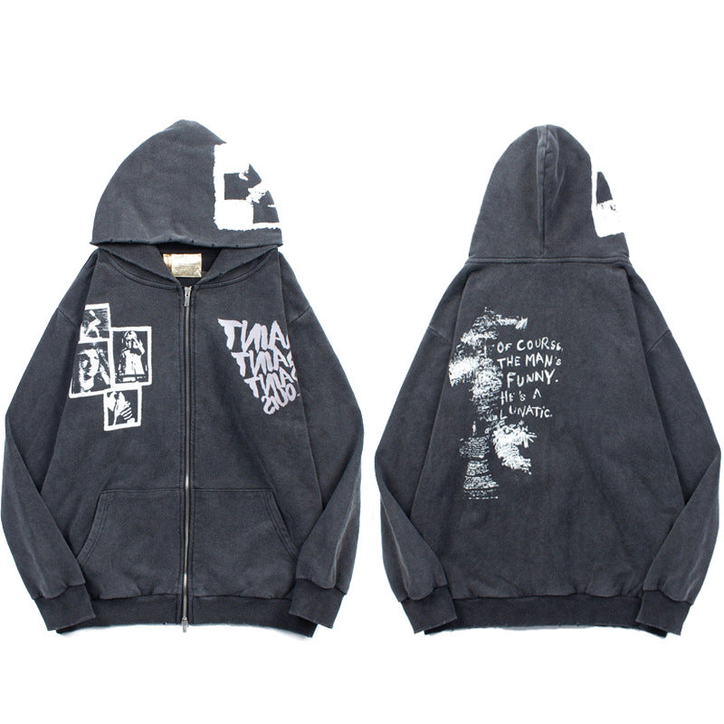 360g Butterflies Back Letter Printed Wash Old Cotton Hoodie