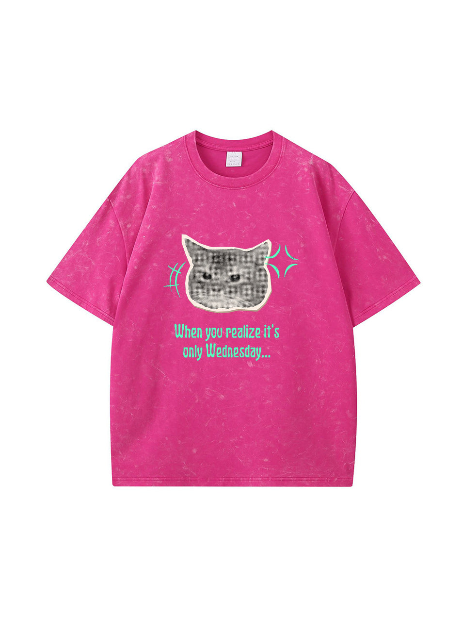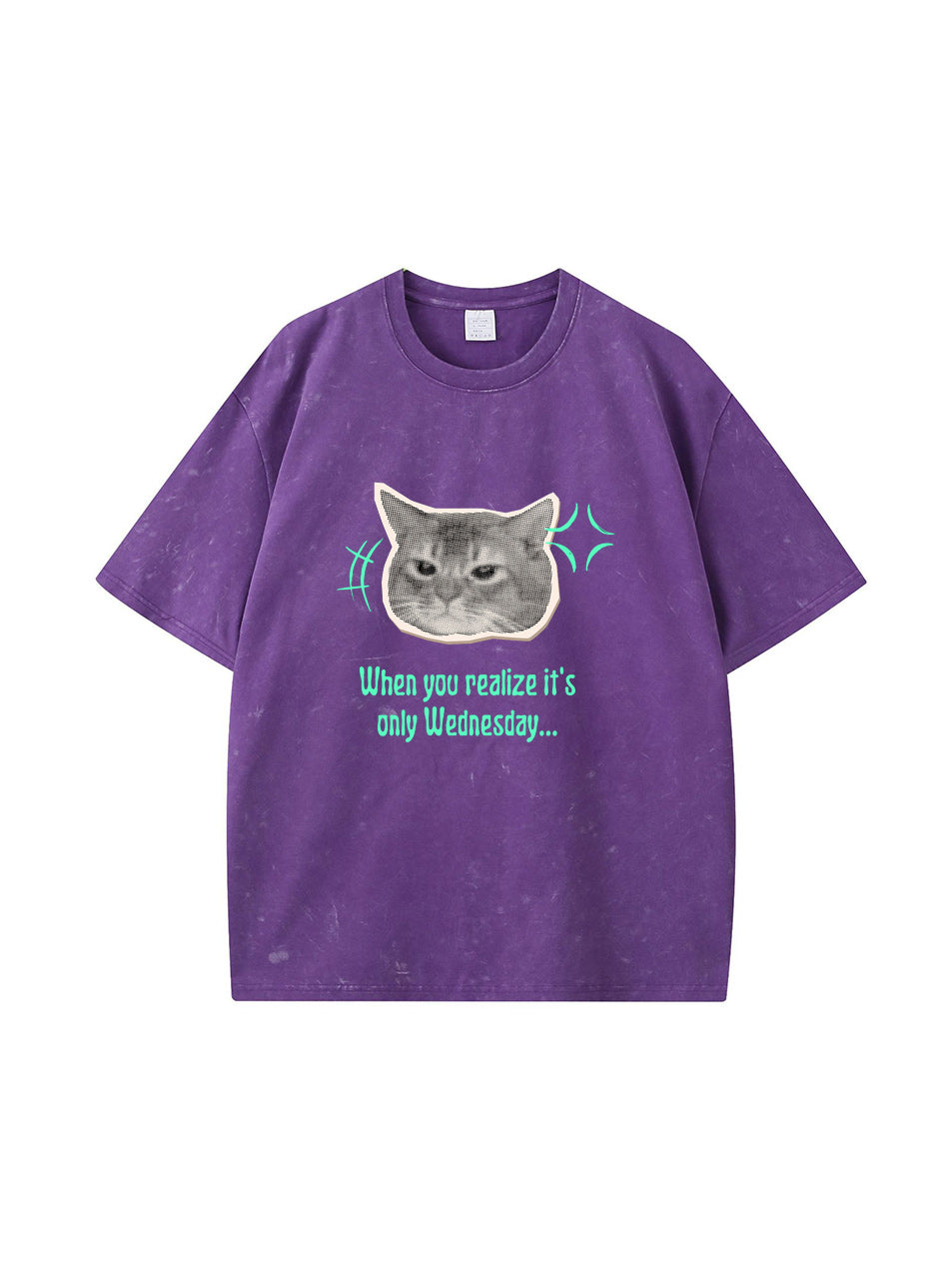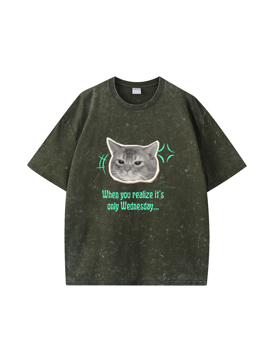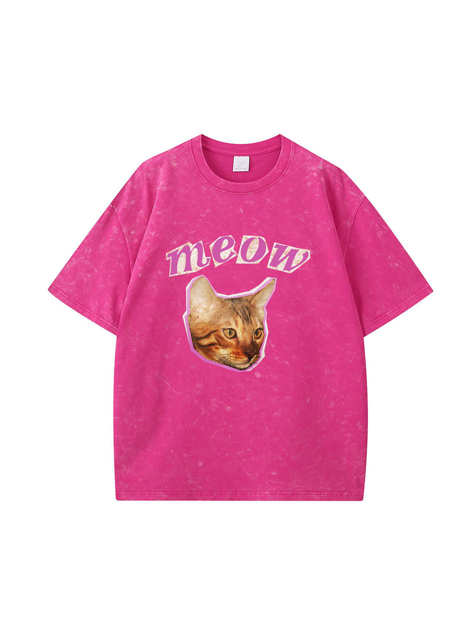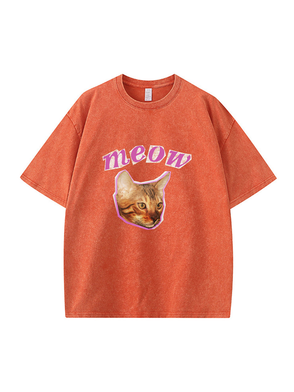 Meow Cat Print Vintage Washed Cotton T Shirt