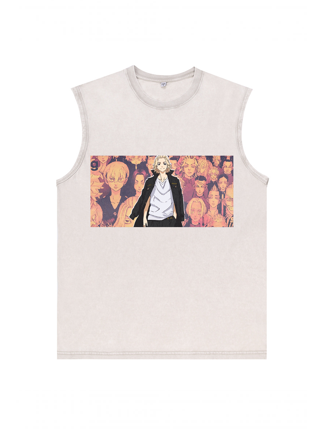 230g Manjiro Sano Printed Wash Old Cotton Sleeveless T-shirt