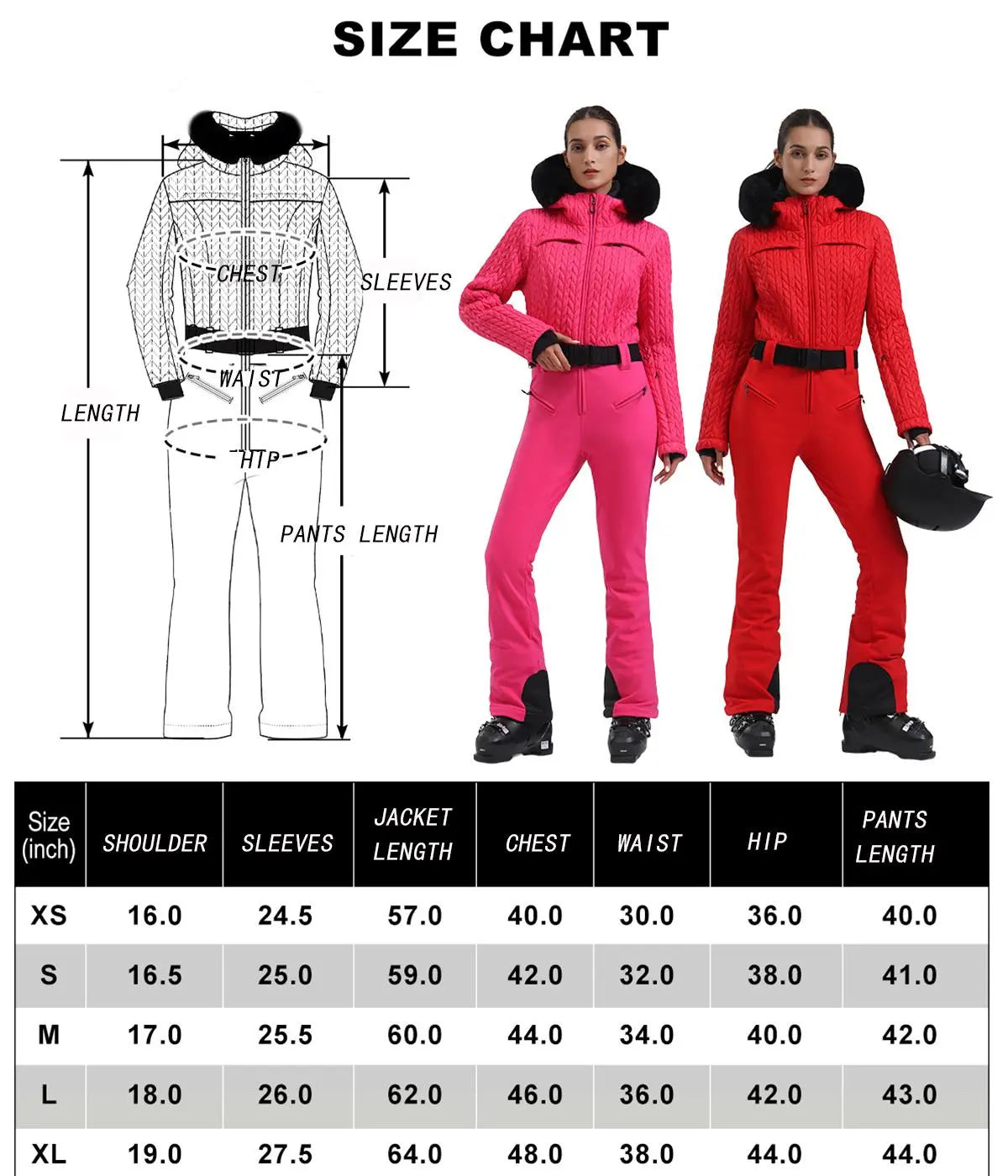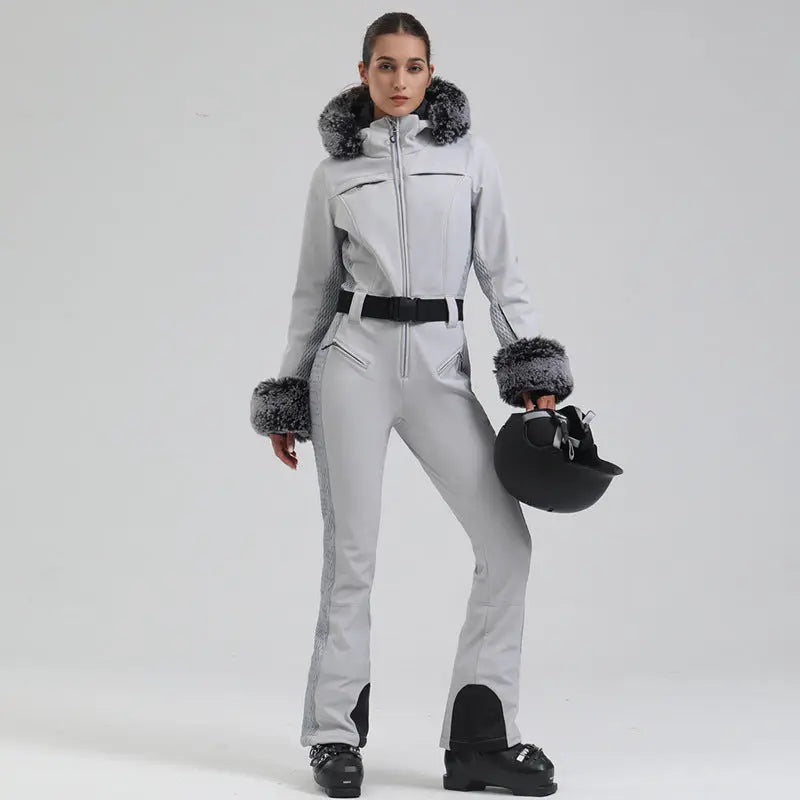 Slim Fit One Piece Ski Jumpsuit with Faux Fur Hood Chic Style