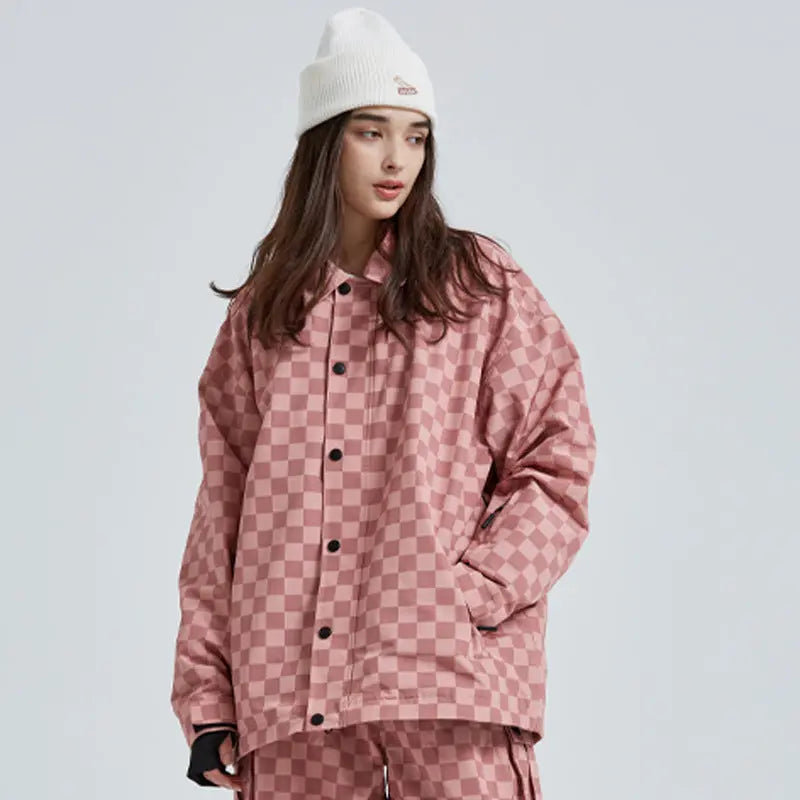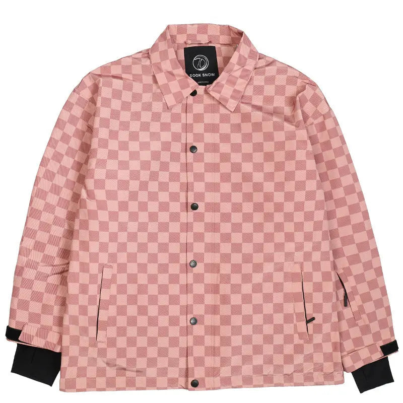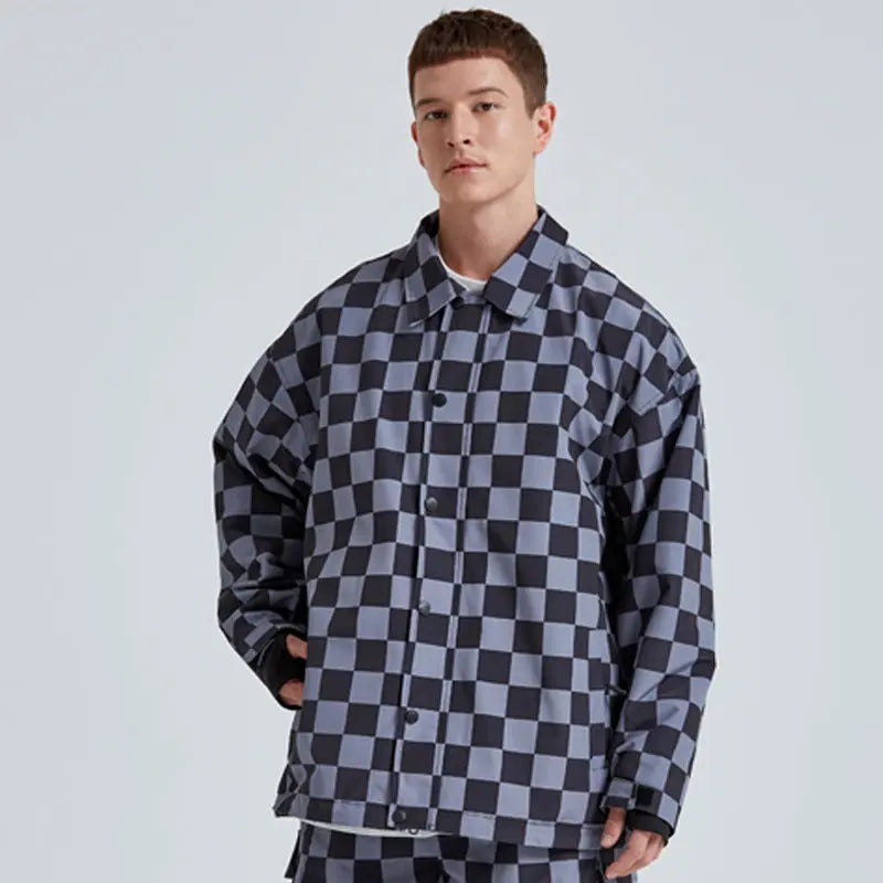 Stylish Checkerboard Ski Shirt Jacket Insulated Button-Up Snow Coat