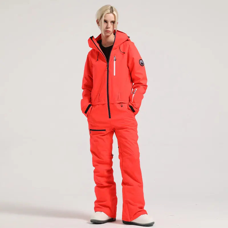 Stylish One-Piece Ski Suit Slim Fit Snowsuit with Zipper Closure