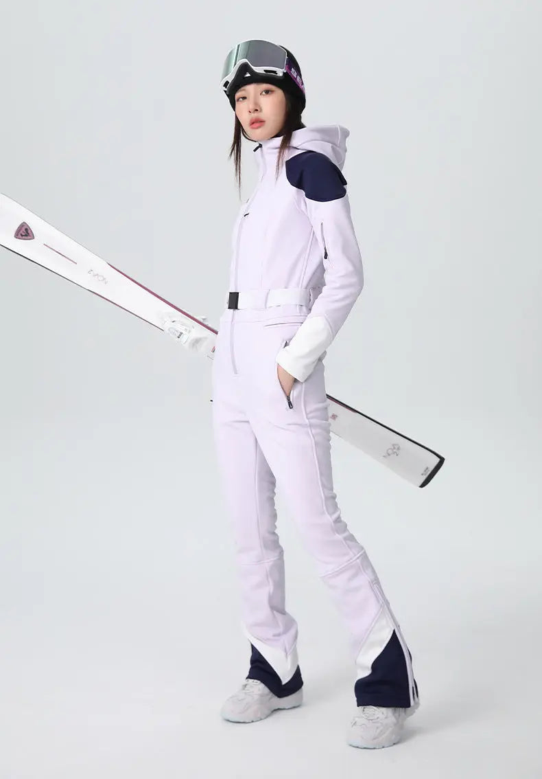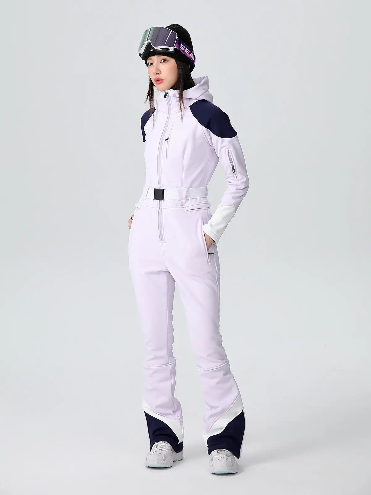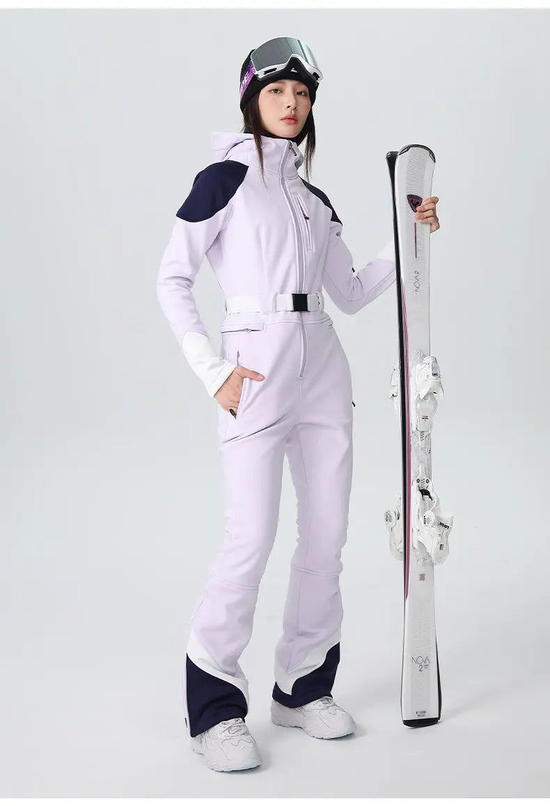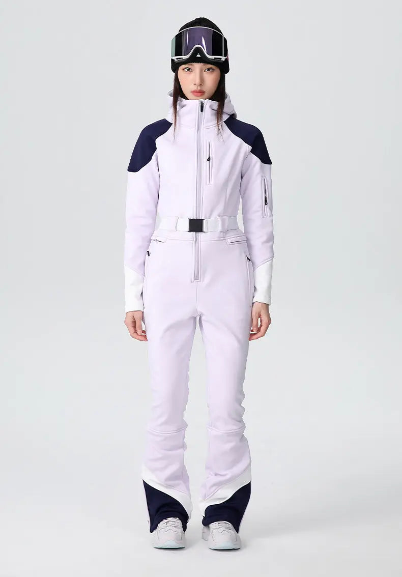 Women Fitted Stretch Ski Jumpsuit Elegant One Piece Flare Snowsuit