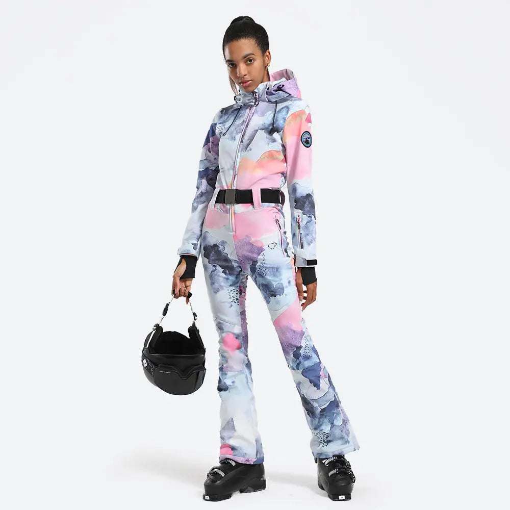 Women Hooded One Piece Snowsuits Waterproof Snow Jumpsuits