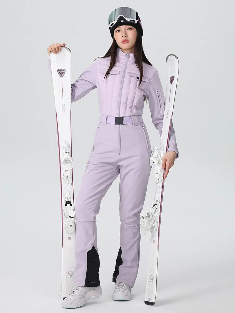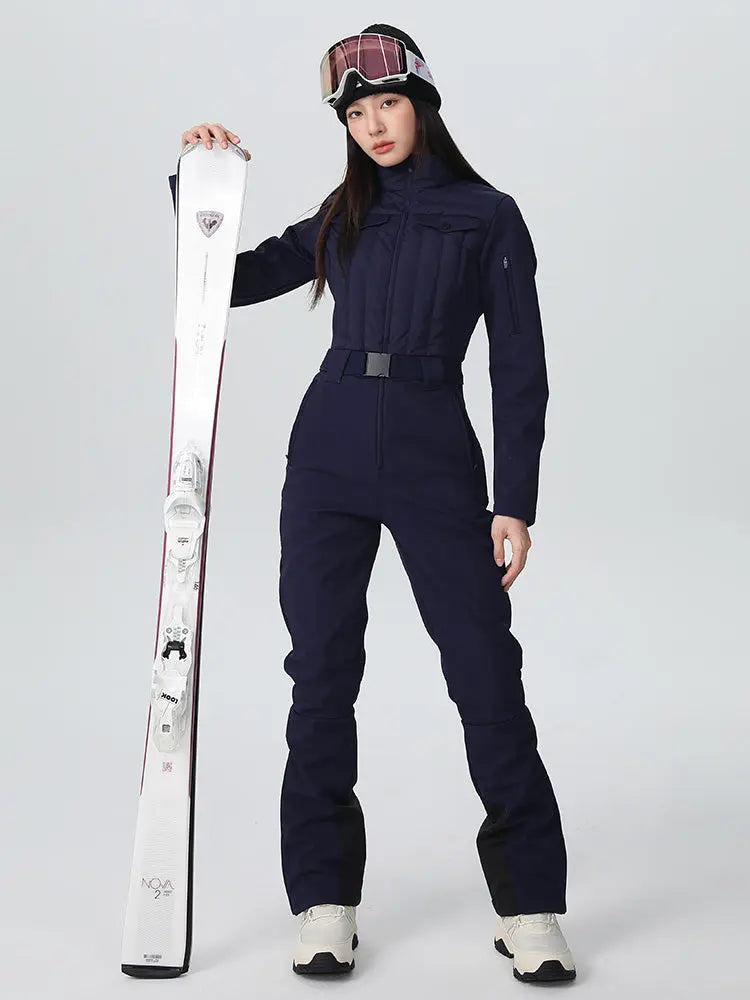 Women One Piece Slim Ski Suit High Elasticity Snow Jumpsuit