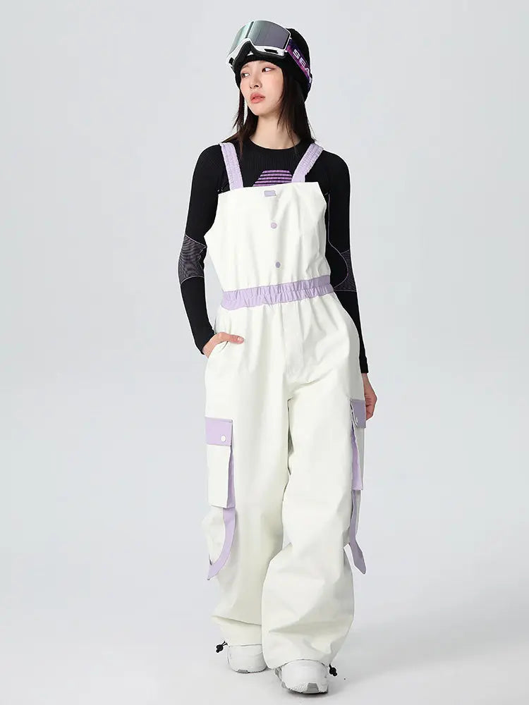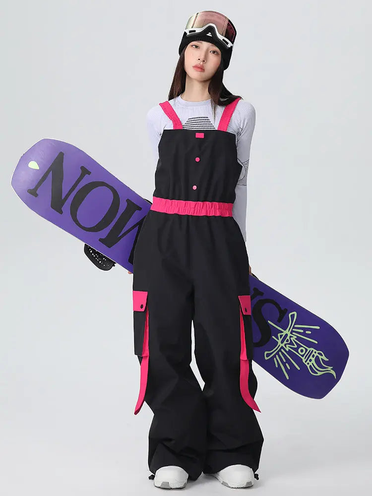 Women’s High Waist Snow Bib Overalls Baggy Ski Pants for Winter Sports