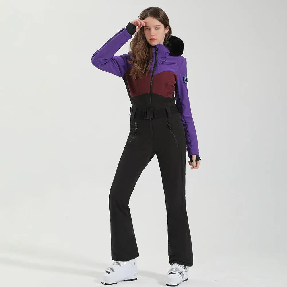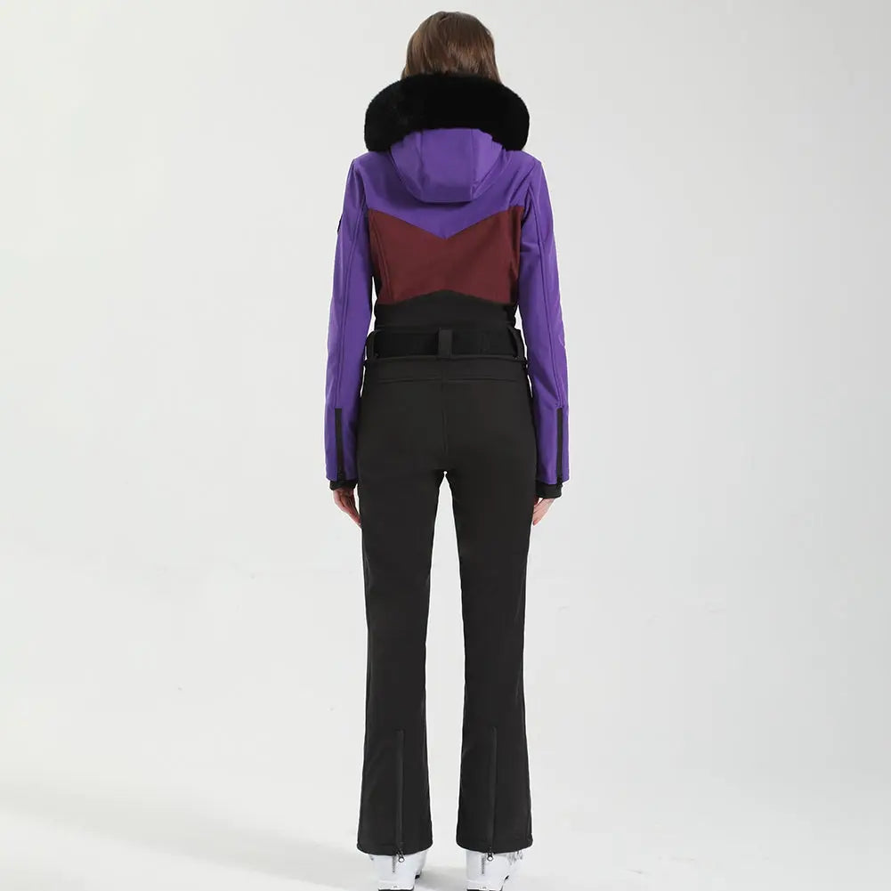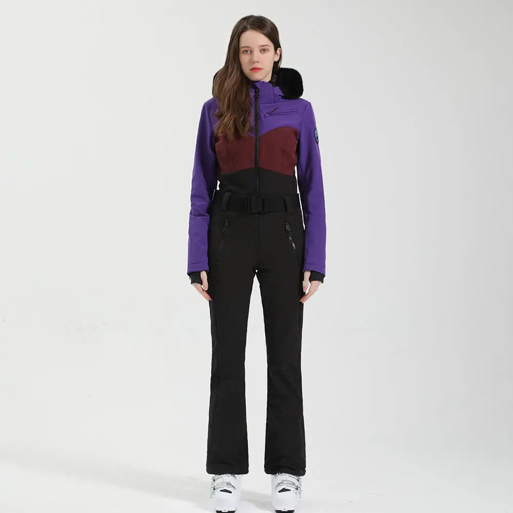 Women’s One-Piece Ski Suit with Fur Collar Snow Jumpsuit
