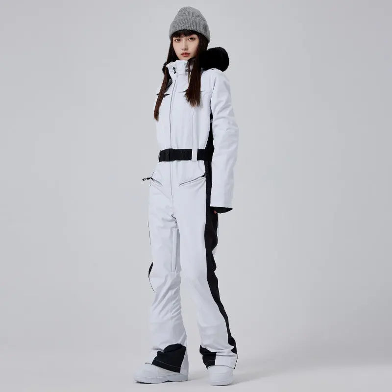 Women’s Thick Snow Jumpsuit with Luxury Fur Collar Ski Suit