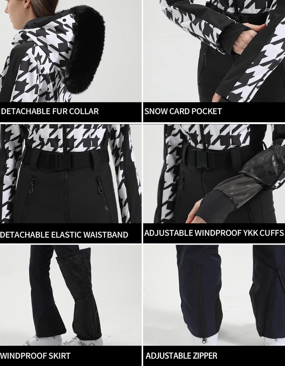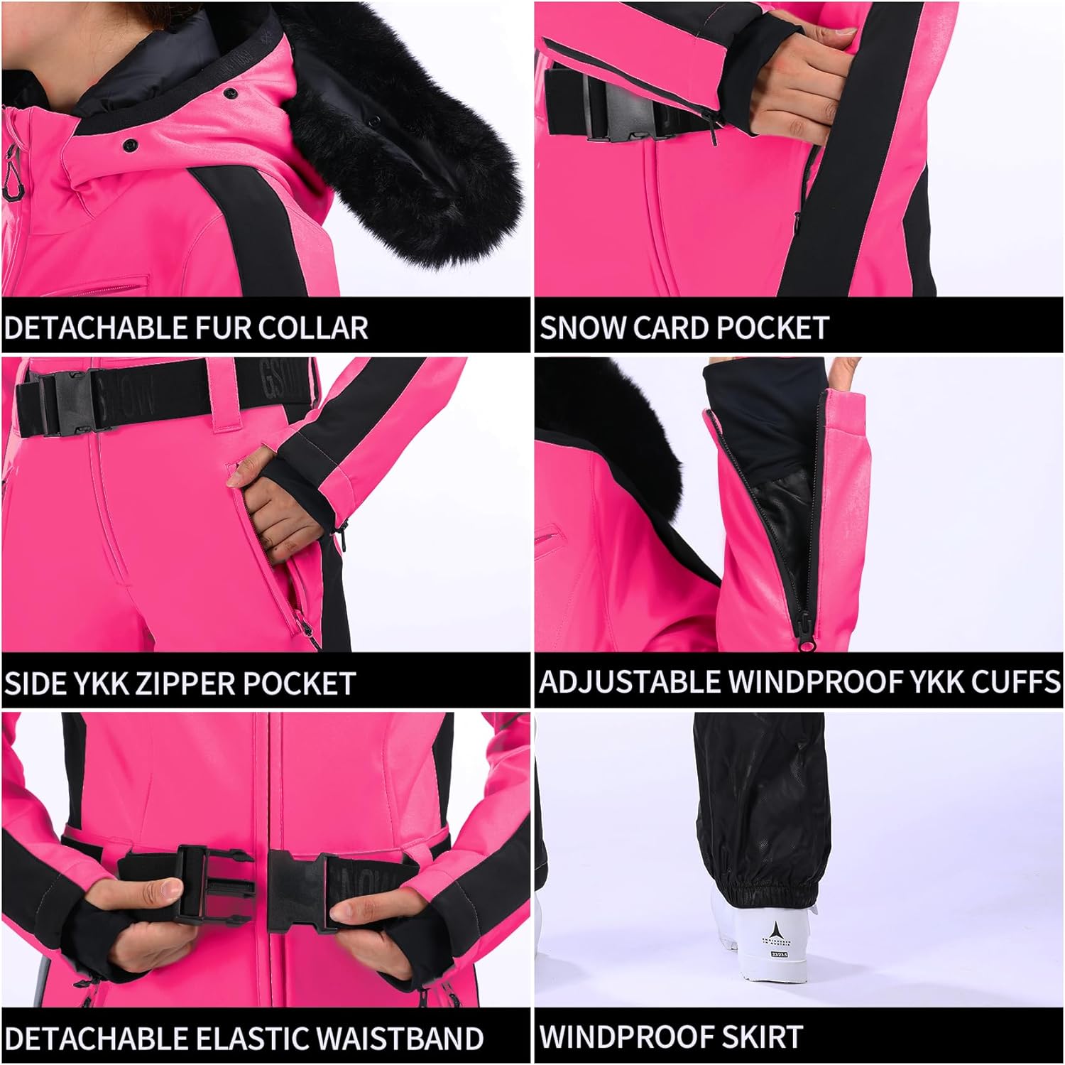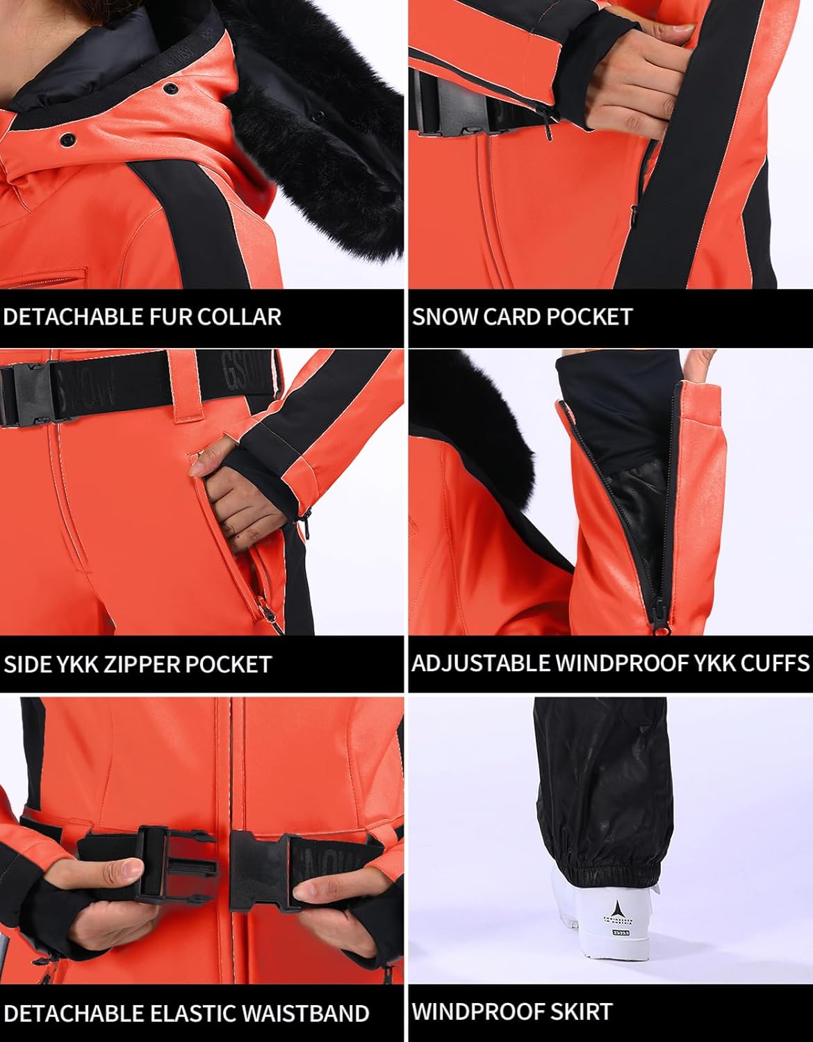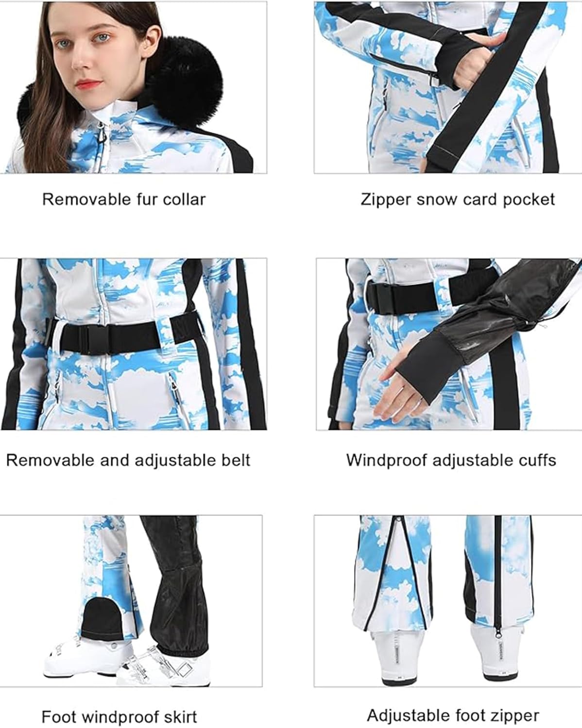 Women's One Piece Ski Suit Slim Insulated Snowsuit